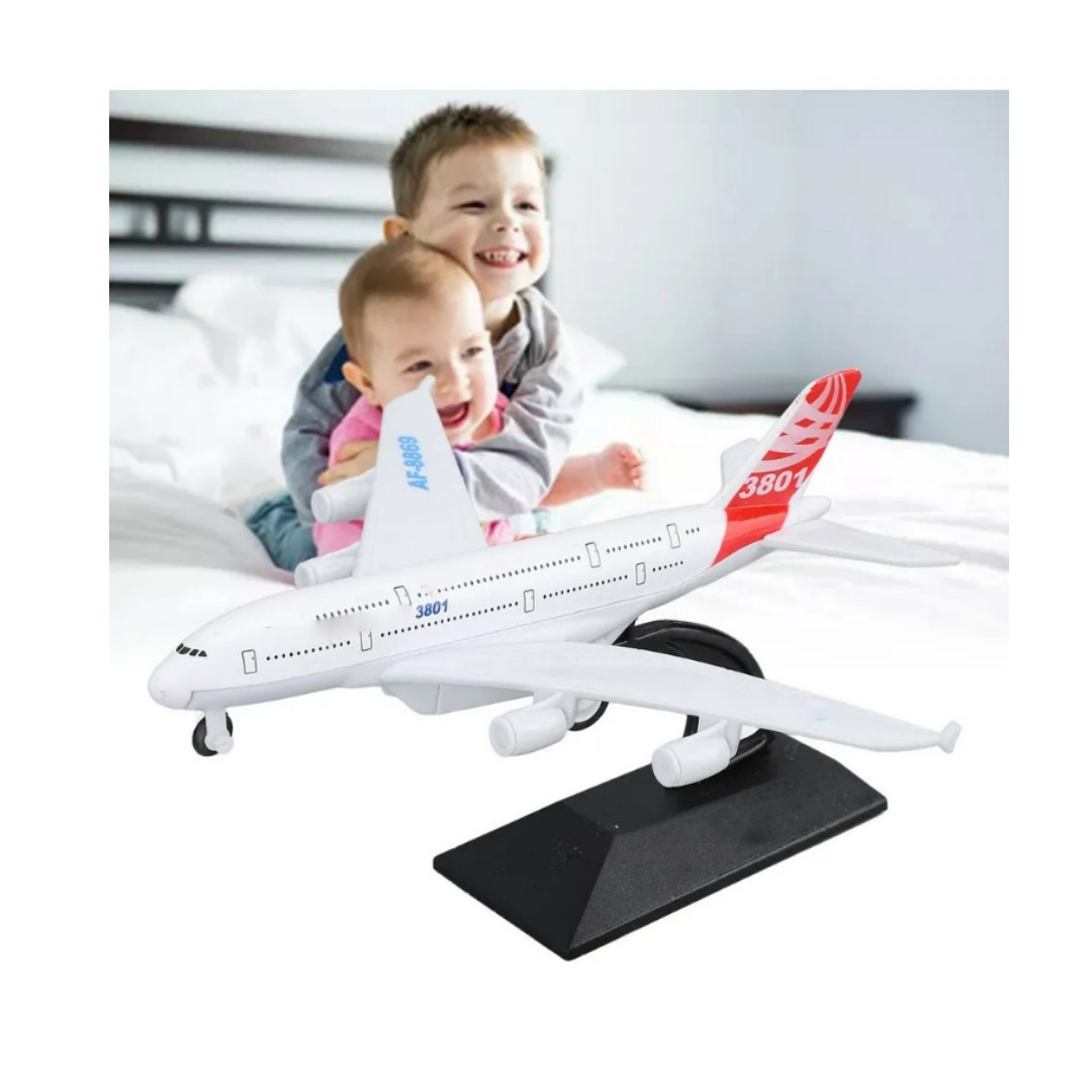 Este es un avión en miniatura tipo maqueta, ideal para coleccionistas, amantes de la aviación o decoración de escritorio. Viene con una base de soporte que simula vuelo, perfecto para exhibir en vitrinas, oficinas o habitaciones infantiles.