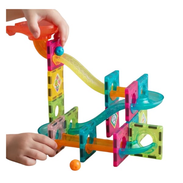 Set de 47 piezas magnéticas multicolor que se conectan fácilmente gracias a imanes seguros y fuertes. Incluye formas geométricas transparentes y una minifigura de castillo para dar vida a historias únicas. Fomenta la construcción libre, el juego simbólico y el desarrollo motor. Ligero, portátil y fácil de guardar. Perfecto para jugar en casa o llevar en viajes.