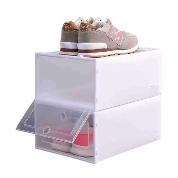 Material: la caja de zapatos está hecha de un nuevo material PP con un diseño más grueso. Tiene una fuerte capacidad de carga, puede soportar presión, evitar deformaciones