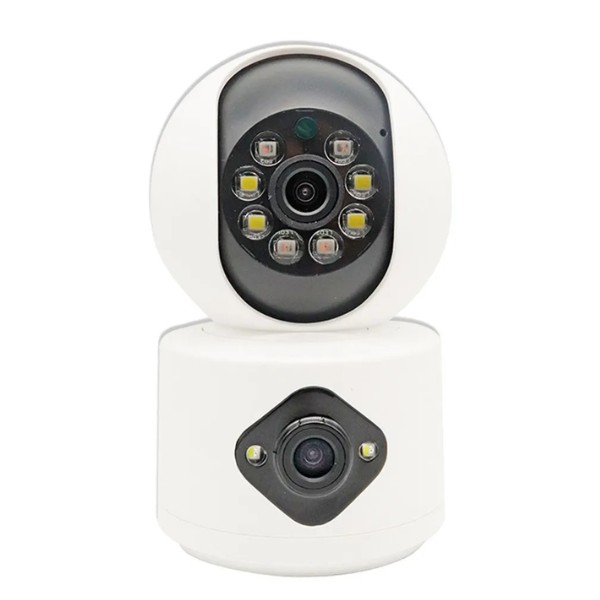 La cámara de vigilancia inteligente WiFi HD ofrece seguridad avanzada con doble lente y resolución 1920x1080P (Full HD) para una cobertura completa sin puntos ciegos. Su sistema PTZ permite rotación horizontal de 350° y vertical de 90°, ideal para monitorear toda una habitación con un solo dispositivo. Incluye visión nocturna triple: infrarrojos, luz blanca y modo día/noche a color, asegurando imágenes claras las 24 horas. Con detección inteligente por IA, identifica personas, activa alarmas de movimiento y sigue automáticamente al intruso. El audio bidireccional permite hablar desde la app como si estuvieras en casa. Se conecta por WiFi o mediante punto de acceso AP, incluso sin red estable. Graba en tarjeta microSD (hasta 128 GB) y se controla fácilmente desde Android e iOS.