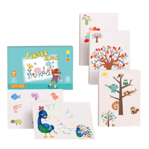 DIVERTIDO KIT PARA PINTAR CON LOS DEDOS: Este kit para pintar con los dedos incluye una almohadilla de tinta de 12/24 colores, 30 tarjetas de pintura o un álbum de fotos. Puede dibujar en el álbum de fotos directamente con los dedos y sellar. Puedes usar tu imaginación para hacer tu propio álbum de fotos elegante.