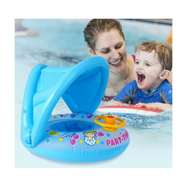 Este flotador con toldo desmontable está diseñado especialmente para mantener a tu pequeño protegido del sol mientras se divierte en la piscina o la playa.