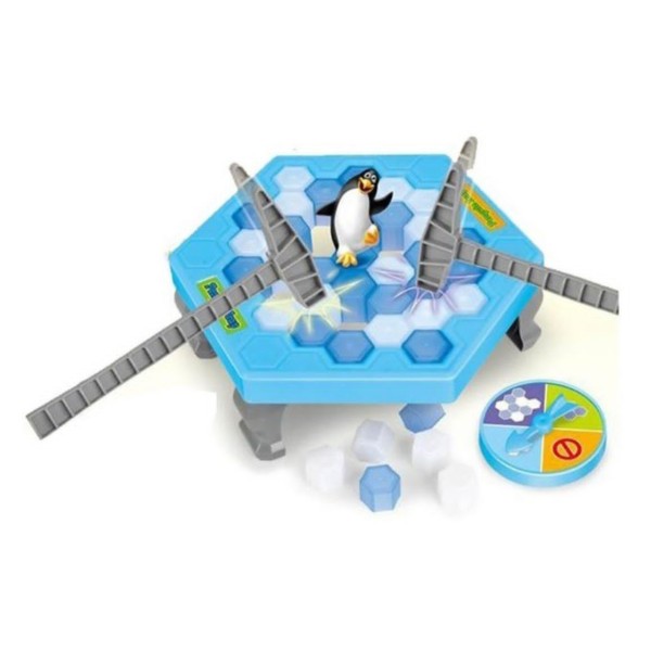 Diviértete con amigos o familia tratando de salvar al pingüino con este entretenido juego de mesa. Se colocan los cubitos de hielo en la plataforma con el pingüino arriba, cada jugador en su turno deberá derribar los bloques de hielo que correspondan según el color que indique la rueda, y el jugador que hace caer el pingüino pierde. Tumba los bloques de hielo y trata de que no se caiga el pingüino, con el martillo golpea y saca los hielos ¡trae todo para empezar la diversión!
