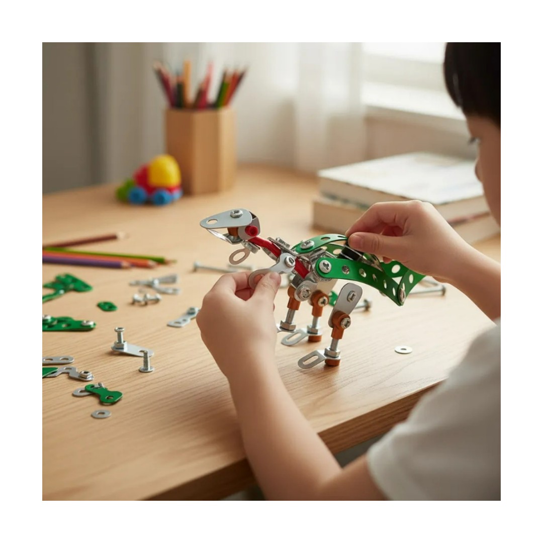 ¡Diversión y aprendizaje en un solo set! Arma tu propio dinosaurio de metal con este entretenido y educativo kit de 85 piezas. Ideal para niños desde los 8 años, este modelo fomenta la creatividad, la coordinación y el pensamiento lógico.