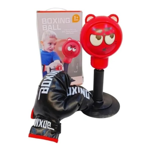 Set completo de mini boxeo con guantes acolchados y base roja rebote. Ideal para interiores y exteriores. Fomenta la coordinación motriz, agilidad y autorregulación emocional. Fabricado en goma resistente, sin baterías ni sonidos. Seguro y fácil de guardar.