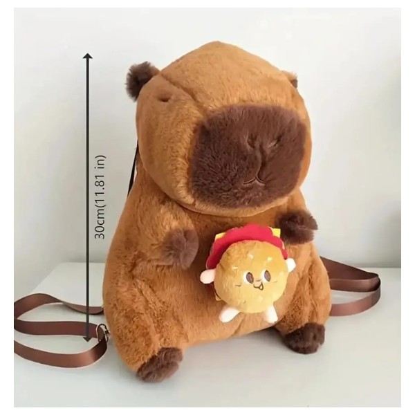 Linda mochila de felpa con diseño 3D de capibara comiendo una hamburguesa, ideal para niños, adolescentes y adultos que aman los accesorios originales. Fabricada en material suave, resistente y de tacto agradable, combina comodidad y estilo. Cuenta con compartimento principal amplio, bolsillo frontal y correas ajustables acolchadas para mayor comodidad. Perfecta para ir al colegio, pasear, viajar o usar como detalle en fiestas temáticas. Su diseño llamativo y divertido la convierte en el centro de atención.