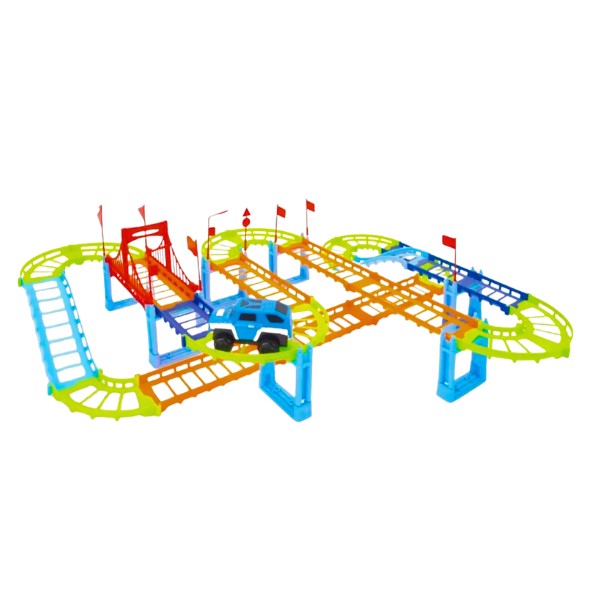 La Pista de Auto Mágica Armable de 52 piezas es un juego dinámico que combina construcción y diversión en movimiento. Incluye piezas modulares flexibles de colores brillantes que se conectan fácilmente para crear circuitos infinitos: rectas, curvas, espirales y caídas en zigzag. El vehículo incluido se desplaza sin baterías ni imanes, gracias a un sistema de equilibrio y gravedad que parece mágico.