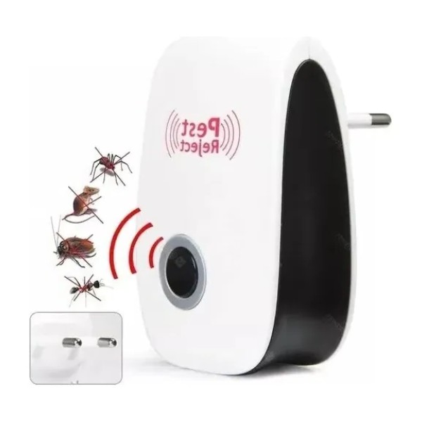 Repelente ultrasónico de plagas moscas, mosquitos, zancudos, roedores y otras plagas molestas. Ayuda a disminuir su cantidad en el área de funcionamiento del Repelente.