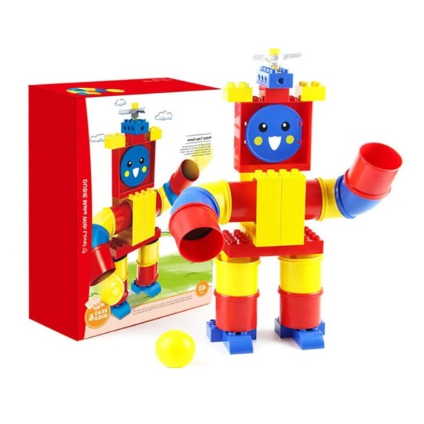 Divertido robot armable interactivo, compuesto por grandes bloques tipo tubo en colores vibrantes que se conectan fácilmente entre sí. Diseñado especialmente para manos pequeñas, este juego de construcción permite armar un robot con cara amigable y personalizable, estimulando la imaginación y el pensamiento lógico. Incluye una pelota interactiva que puede colocarse como cabeza o accesorio, añadiendo dinamismo al juego. Fabricado en plástico resistente y seguro, libre de BPA y bordes afilados.