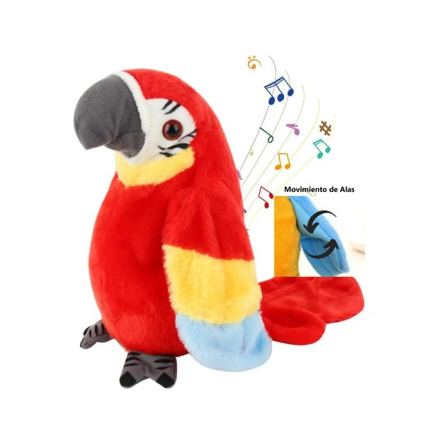 Robot Loro Repite Habla Baila Alas Peluche Pájaro Guacamaya