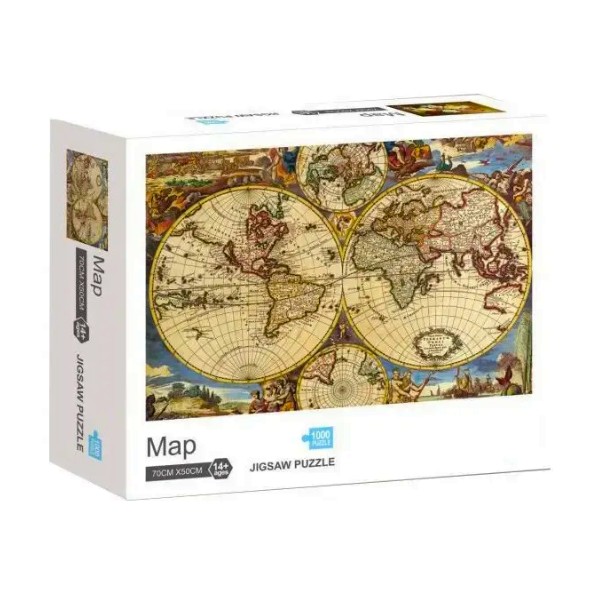Rompecabezas de 1000 piezas con diseño de un mapa del mundo antiguo, tamaño armado: 70x50 cm. Ideal para mejorar concentración, paciencia y creatividad. Perfecto para armar en familia o como decoración después de completarlo.