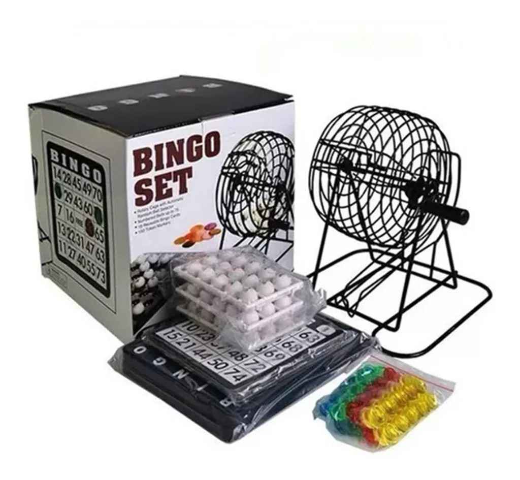 Set Completo Bingo Tómbola Metálica Clásico De Lujo