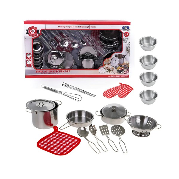 Set De Cocina Ollas 18 Piezas Acero Inoxidable Juguete Niños