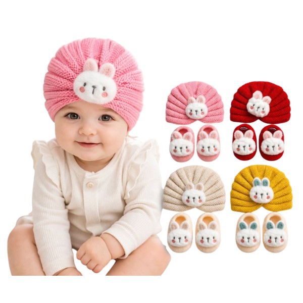 Set Turbante Bebé + Calcetines Conejo Invierno