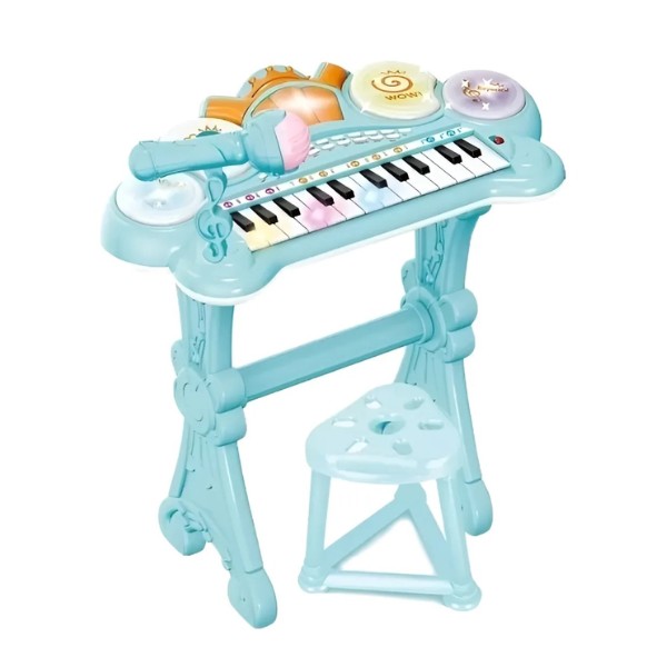 - Incluye un Micrófono para que el niño en el juego, ejercite la coordinación mano - ojo, contribuye al desarrollo auditivo, la formación de la memoria, la cognición con respecto a la Teoría de la Música, el cultivo del equilibrio y desarrollo de una rica imaginación llena de emociones.