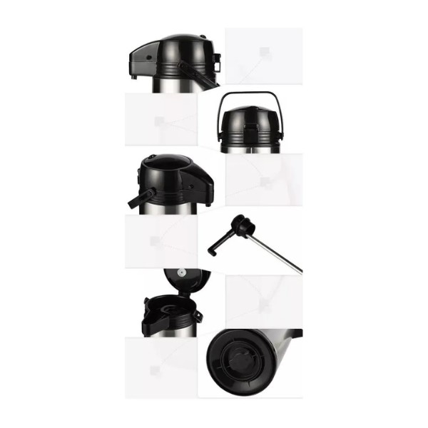 Este termo mantendrá hasta 1,9 litros de café recién hecho durante un máximo de 6 horas (o más). Es ideal para familias numerosas, oficinas, iglesias o para eventos en general. Producto de excelente calidad, exterior de acero inoxidable con accesorios de plástico reforzado, ampolla interior de vidrio.